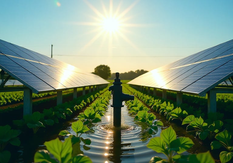 Solutions solaires et hydrauliques dédiées aux exploitations agricoles, assurant autonomie énergétique, pompage efficace et optimisation des ressources en eau.
